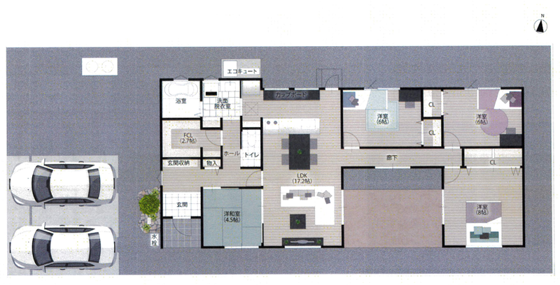 | 設備・条件 | 電気、水道、浄化槽、オール電化、モニター付きインターフォン、2台駐車可 、室内洗濯機置場、 フローリング、 クローゼット、 ウォークインクローゼット、 照明、 シューズボックス 、対面キッチン、IH、食器洗浄機 、バス・トイレ別、ユニットバス、シャワー、風呂、水洗トイレ、洋式トイレ、和式トイレ、洗浄便座、洗面化粧台、シャンプードレッサー 、給湯、仲介手数料無し、エコキュート | ||