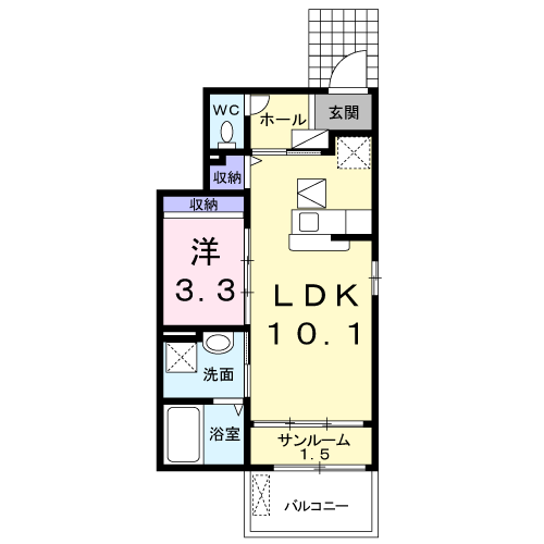 | 間取 | 1LDK | 間取詳細 | 洋3.3、LDK10.1 |