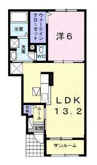 | 間取 | 1LDK | 間取詳細 | 洋6、LDK13.2 |